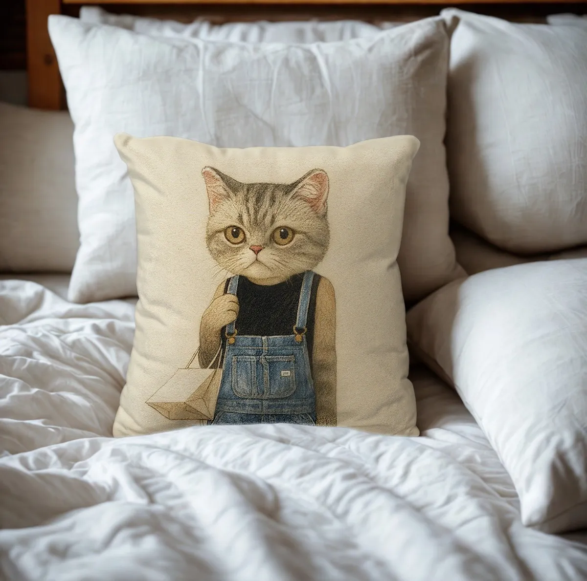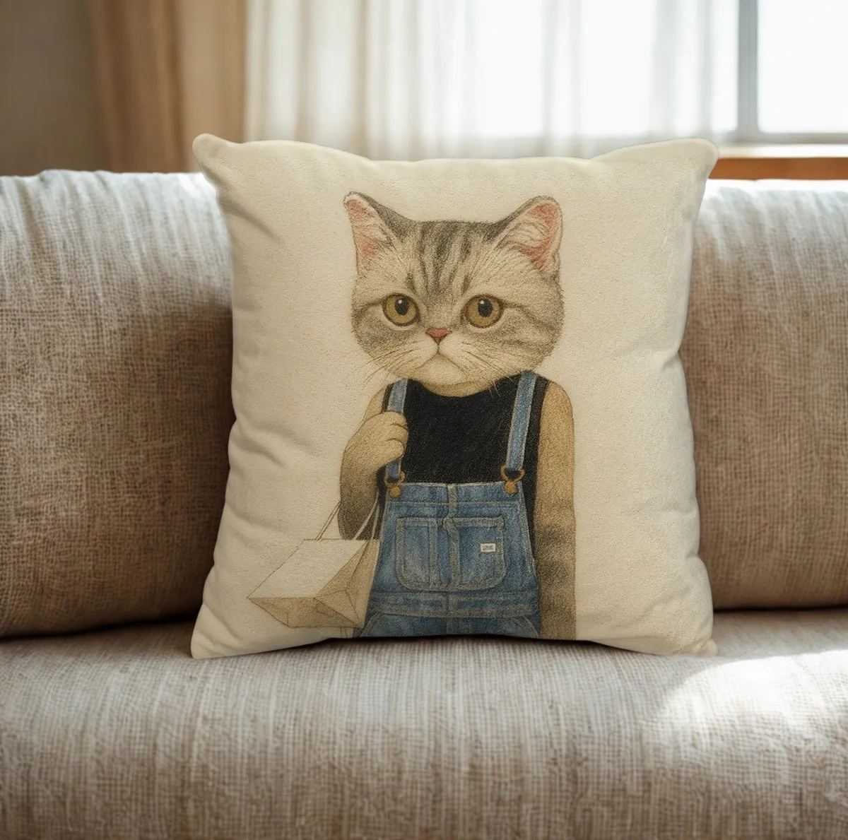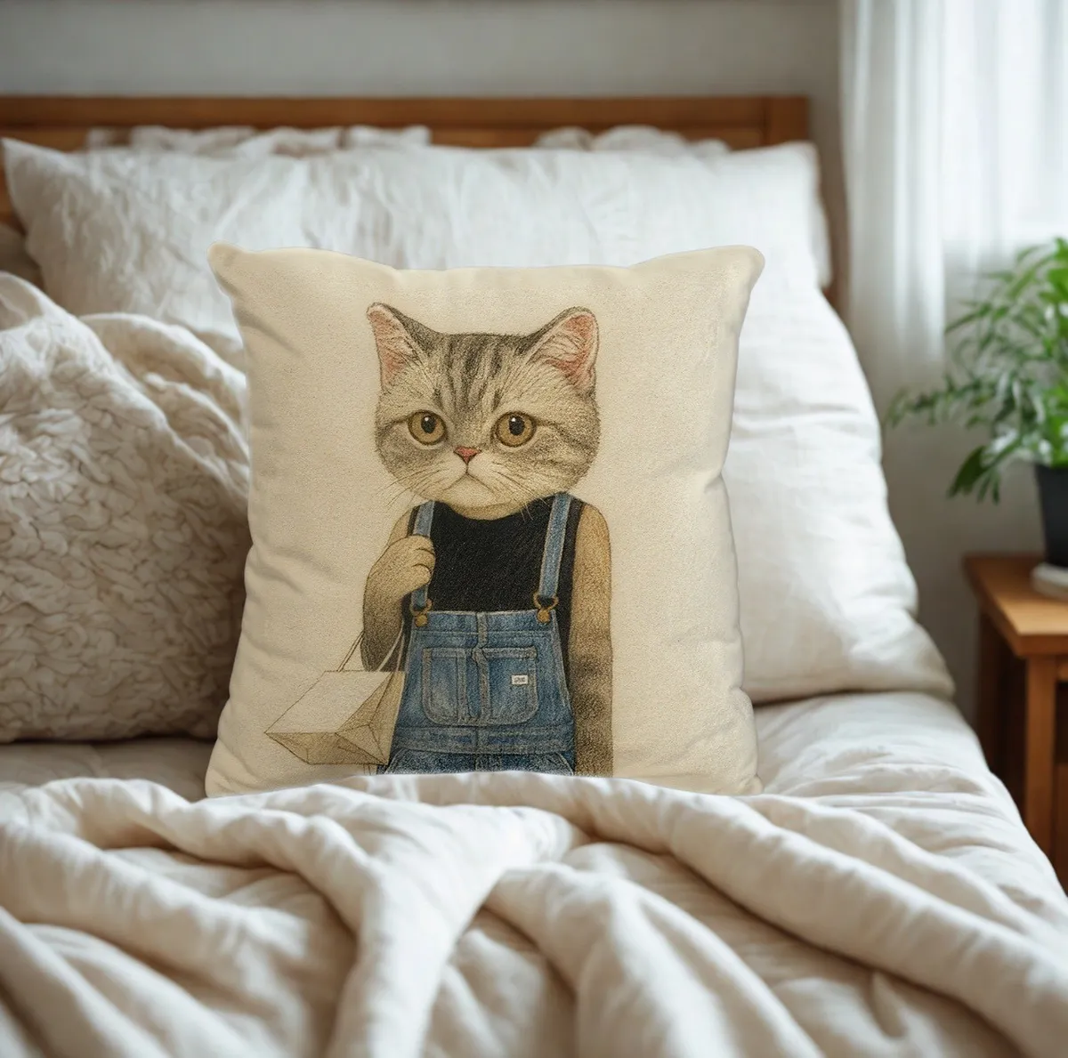 The Neko Ladies時尚貓咪抱枕 │ 工裝捲耳貓